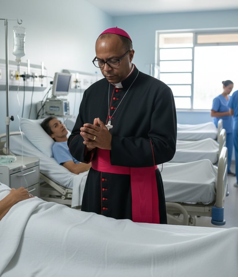 Apoio espiritual e momentos de reflexão em hospitais, ajudando os doentes, suas famílias e colaboradores, a alcançarem paz de espírito. Missas e unção dos enfermos, para acalentar aqueles que precisam...
